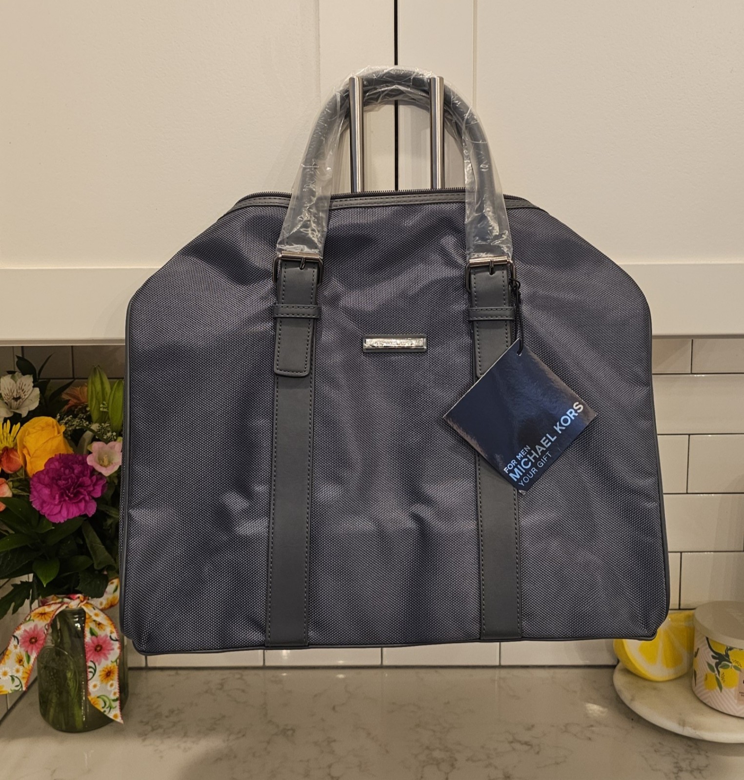 - ONE, NEW grayish blue men's jet set duffle bag!!